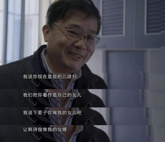 你现在是我的儿媳妇,但我们一直把你看作是自己的女儿,下辈子你做我的女儿吧,让韩诗俊做我的女婿。