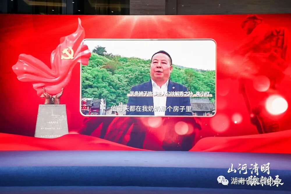 启动仪式上,郴州汝城县文明瑶族乡沙洲村《半条被子》主人公徐解秀的孙子朱小红录制了一段云视频,“我从小就听奶奶讲‘半条被子’的故事,一代一代听下来,‘听共产党的话,跟党走’成为了我们的家训,也影响了几代人。”